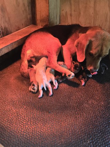 X’CALIBER’S “Ruth”                                          Ruth is a geourgeous chocolate/tan and white pocket with great markings. She is registered and off Champion bloodlines. She has a great personality and temperament and she is going to produce some phenomenal puppies in years to come.